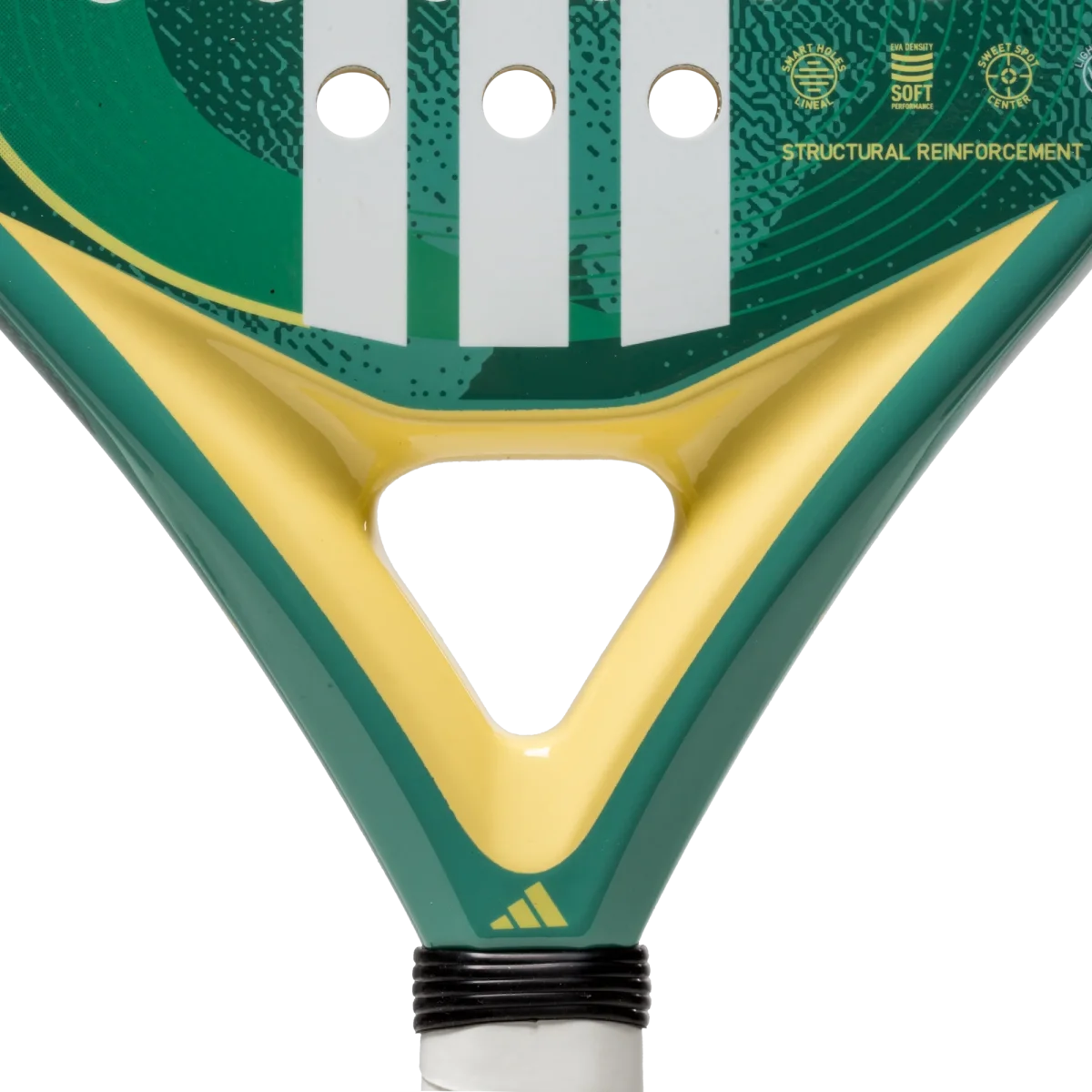 - Smart Holes Lineal : Disposition linéaire des trous en groupes de trois, améliorant la résistance et prolongeant la durée de vie de la raquette.