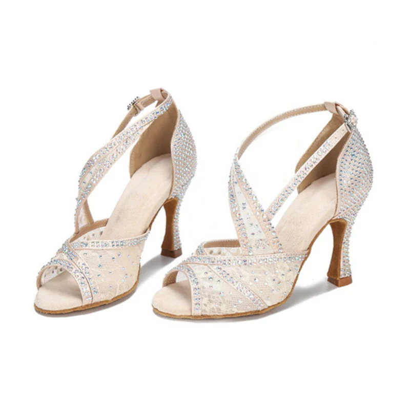 Les Chaussures de Danse « Beige Étincelant » sont idéales pour les danseuses qui recherchent l’élégance et la brillance. Disponibles chez SalsaNueva Shop, elles sont prêtes à faire de vous l’étoile de chaque performance.