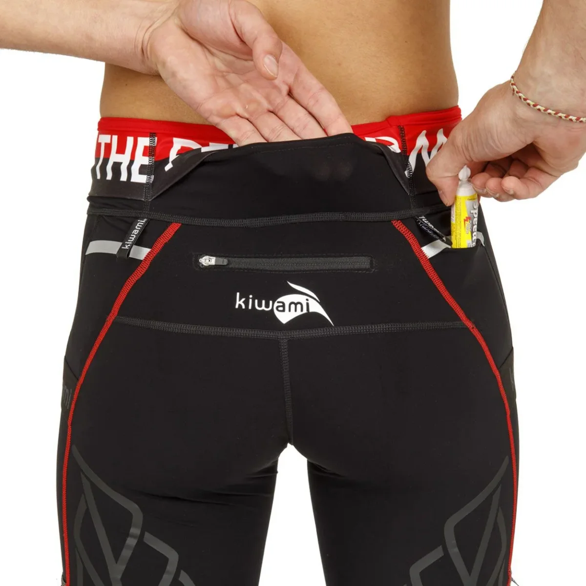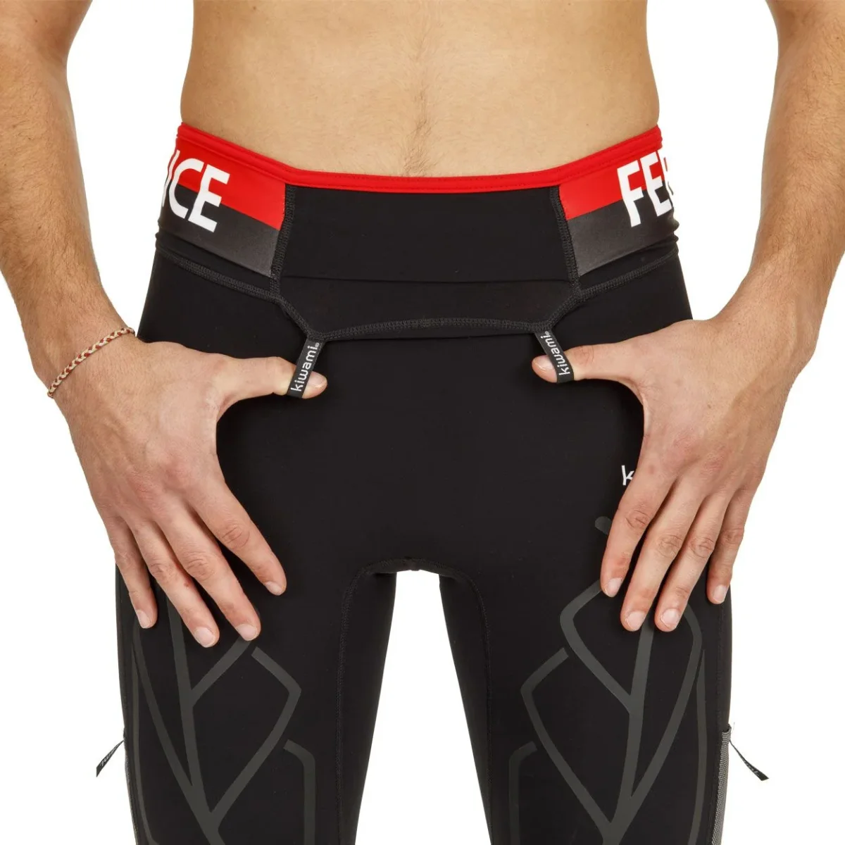 - Bandelettes d’attache sous la ceinture pour accrocher son dossard, un gobelet ou accessoires ;