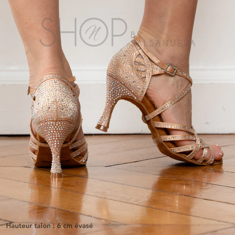 Les Chaussures de Danses Latines « Étoile Dorée » sont une œuvre d’art pour vos pieds, offertes par SalsaNueva Shop. Ces chaussures de danse, ornés de strass étincelants, sont conçus pour les danseuses qui ne se contentent pas de briller, mais qui souhaitent scintiller avec distinction sur la piste de danse.