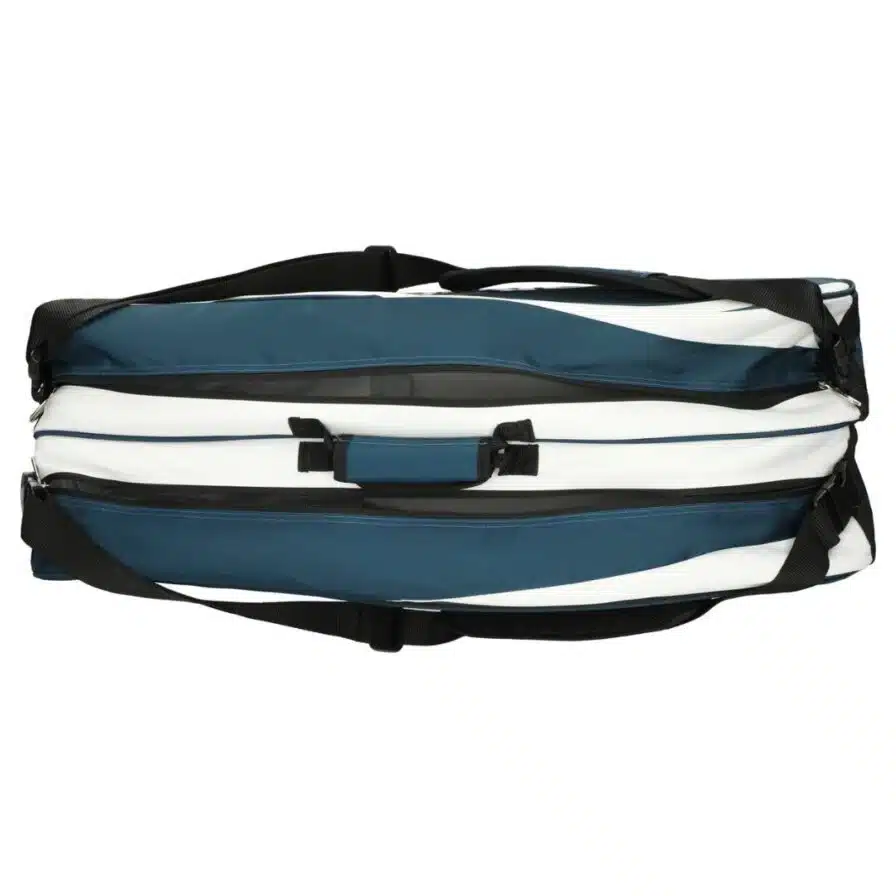 Compartiments : 2 compartiments principaux spacieux + 1 poche latérale/accessoires — pour organiser efficacement raquettes, vêtements, serviette, volants ou petits équipements.
