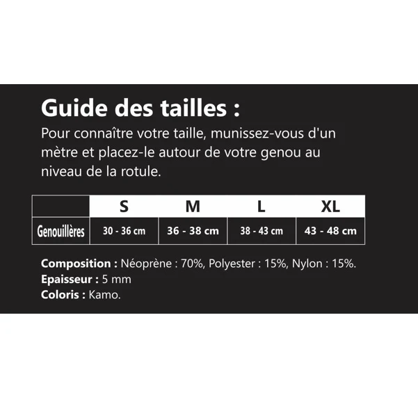 Pour connaître votre taille, munissez-vous d’un mètre et placez-le autour de votre genou au niveau de la rotule.