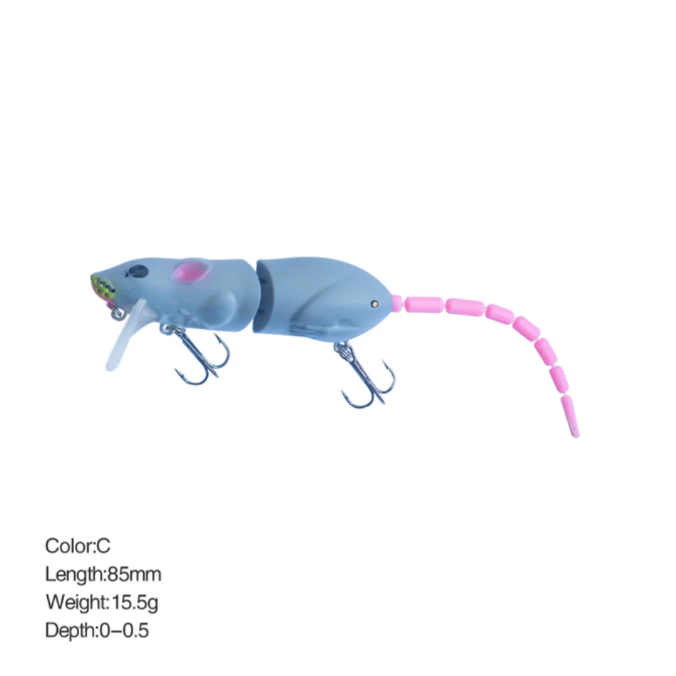 Le Leurre Rat est spécialement conçu pour la pêche de surface, une technique prisée par les pêcheurs de brochet et de bass. Lorsque vous faites glisser ce leurre sur l’eau, il imite parfaitement un petit rongeur en train de nager, créant une action de nage réaliste qui déclenche l’instinct de chasse du poisson. Le résultat ? Des attaques spectaculaires en surface, offrant une expérience de pêche inoubliable.